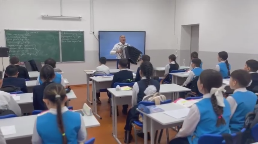 Музыка сабағында баянның күмбірі төгіліп,