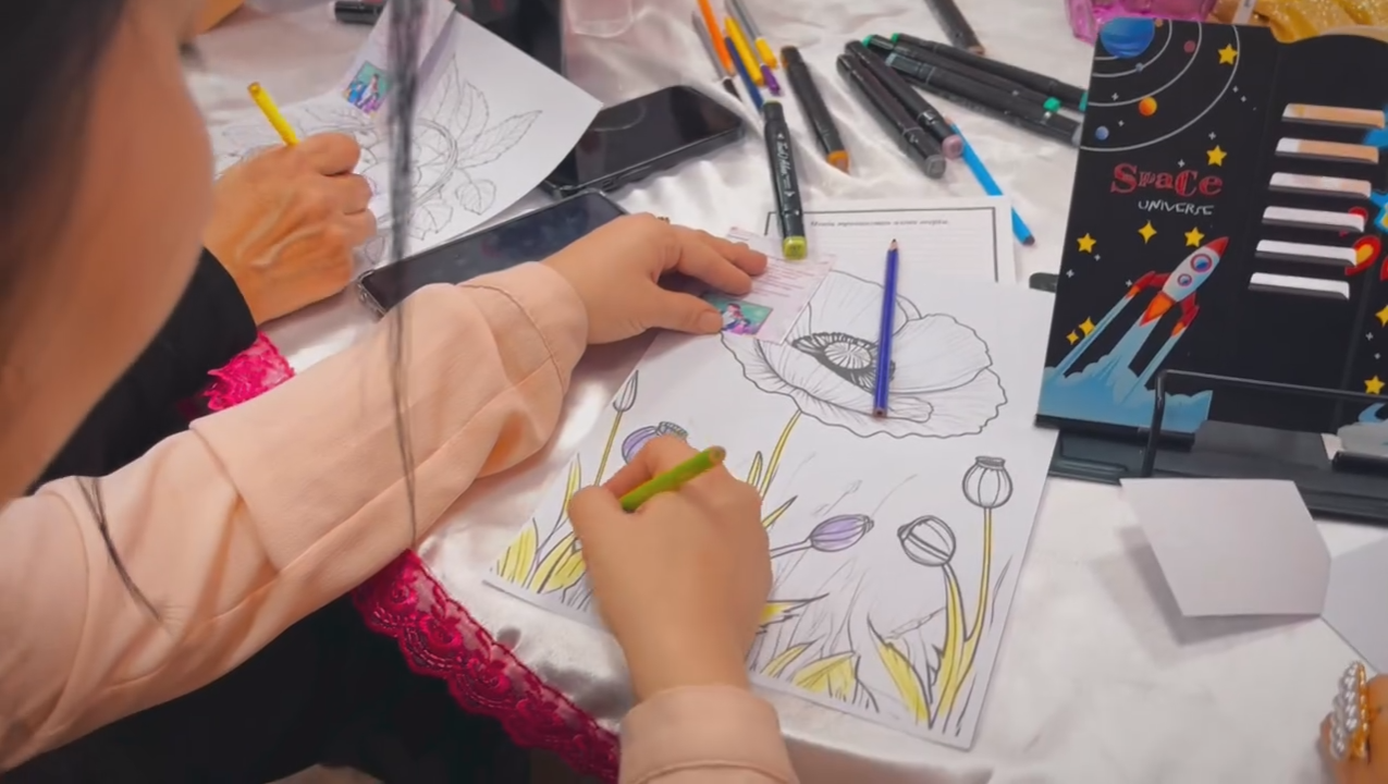 Қатысушылар бояулар мен қиялдың көмегімен өз көңіл-күйлерін бейнелеп, жан дүниесін тыныштандырып, ерекше әсер алды. Әрбір сурет – көңіл күйдің көрінісі, ал әрбір сәт – жаңа шабыттың бастауы болды.